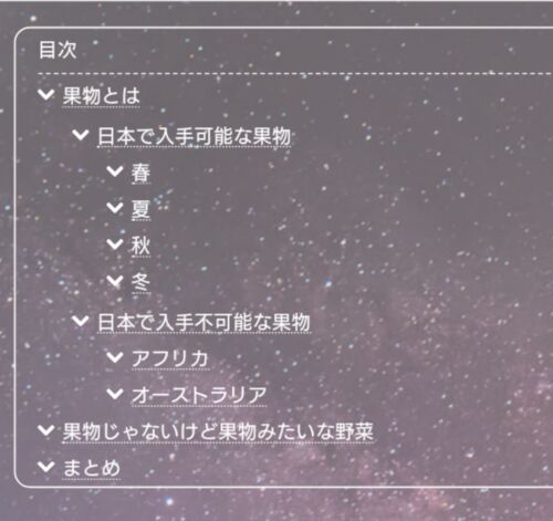 記事を書くのって大変だ! と、早くも挫折の念と、数多のブログ主さんへの尊敬の念を抱いている今日この頃です。 さて、ブログを書くに当たって絶対欲しいと思ってた機能の1つ目次。 結局カテゴリだけでは賄えず、 知りたい情報を最初に一目で判別可能な便…